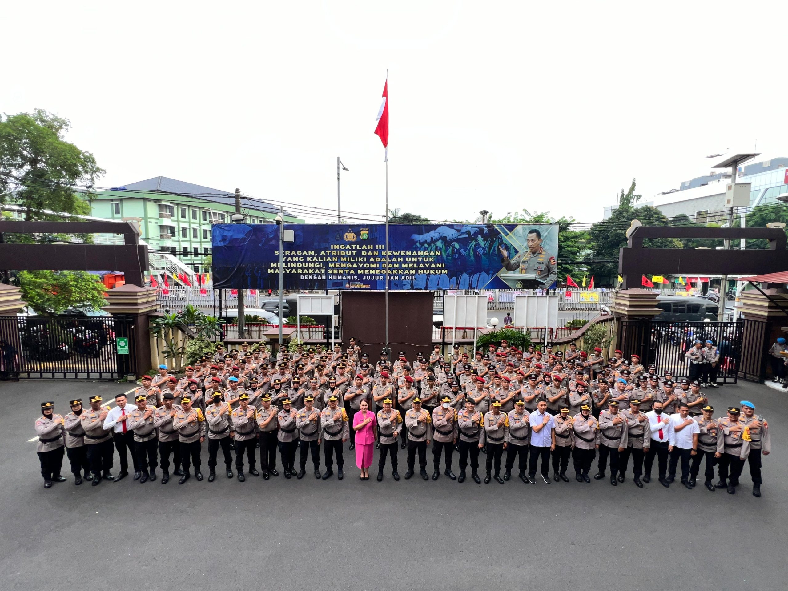 Acara dilanjutkan dengan tradisi penyiraman air oleh Kapolres dan Wakapolres Metro Jakarta Timur serta PJU dan foto bersama.