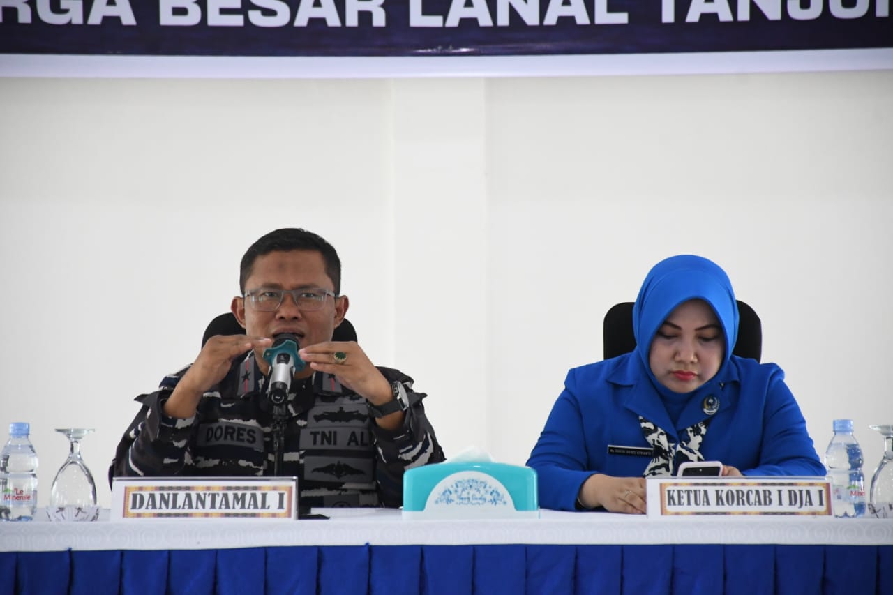 Indosiber.id,TNI AL, Tanjung Balai,- Komandan Pangkalan Utama TNI Angkatan Laut I (Danlantamal I) Laksamana Pertama TNI Dores Aprianto Ardi, S.E., M.Si., M.Han., CHRMP., didampingi Ketua Korcab l DJA I Ny. Santhi Dores Aprianto, melaksanakan Kunjungan Kerja ke Pangkalan TNI AL (Lanal) Tanjung Balai Asahan disambut Komandan Lanal Tanjung Balai Asahan Letkol Laut (P) Wido Dwi Nugraha, S.E., M.Tr. Opsla., didampingi Ketua Cabang 7 Korcab I DJA I Ny. Wido Dwi Nugraha beserta Staf di Mako Lanal Tanjung Balai Asahan, Kamis (18/1/2024).
