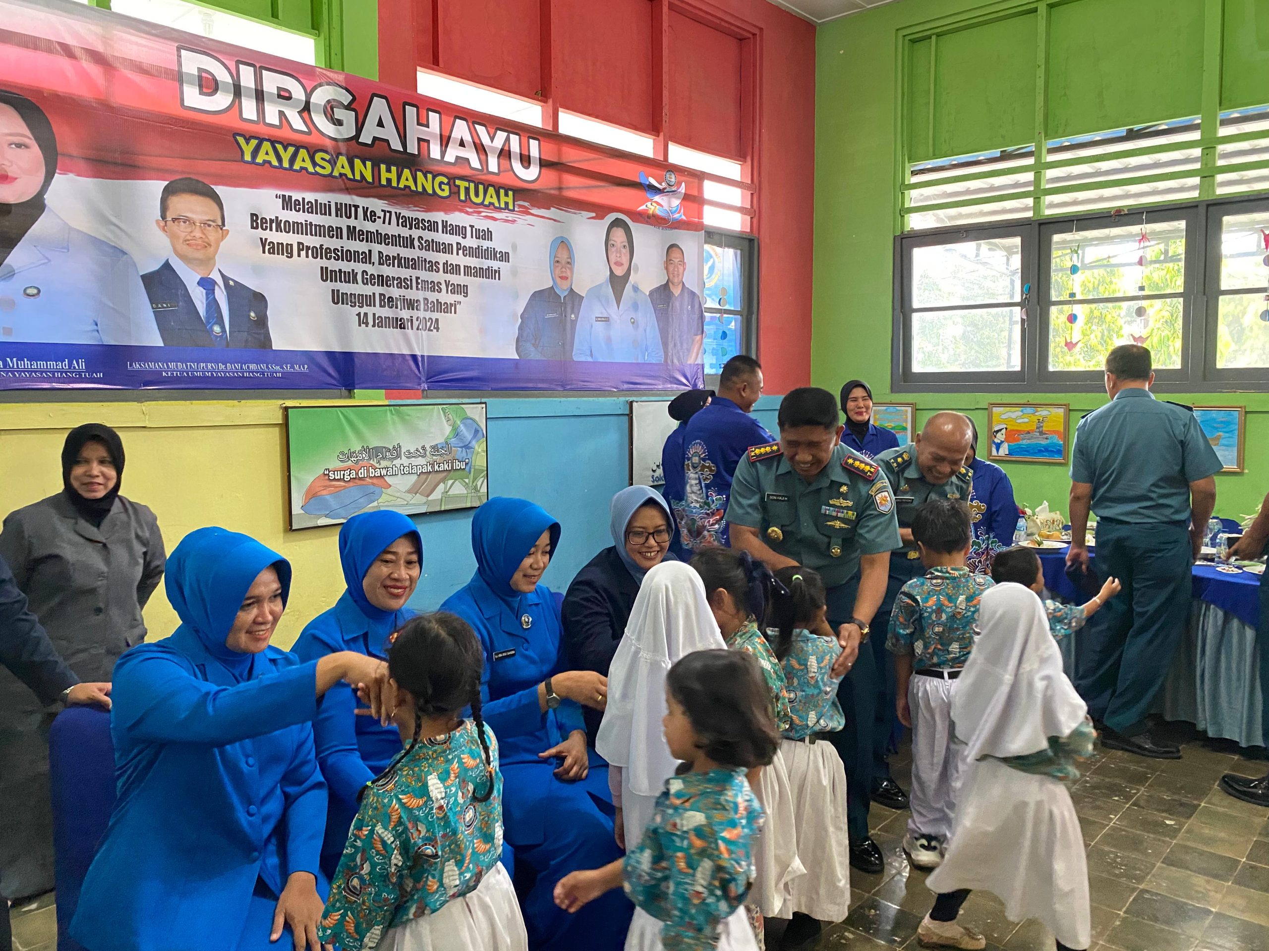 Indosiber.id, TNI AL, Sabang,- Dalam rangka memperingati Hari Ulang Tahun Ke-77 Yayasan Hang Tuah Tahun 2024, Yayasan Hang Tuah Perwakilan Sabang melaksanakan tasyakuran pemotongan tumpeng, bertempat di TK Hang Tuah, Jalan Yos Sudarso, Gampong Kuta Ateuh, Kecamatan Sukakarya, Kota Sabang, Rabu (17/1/2024).