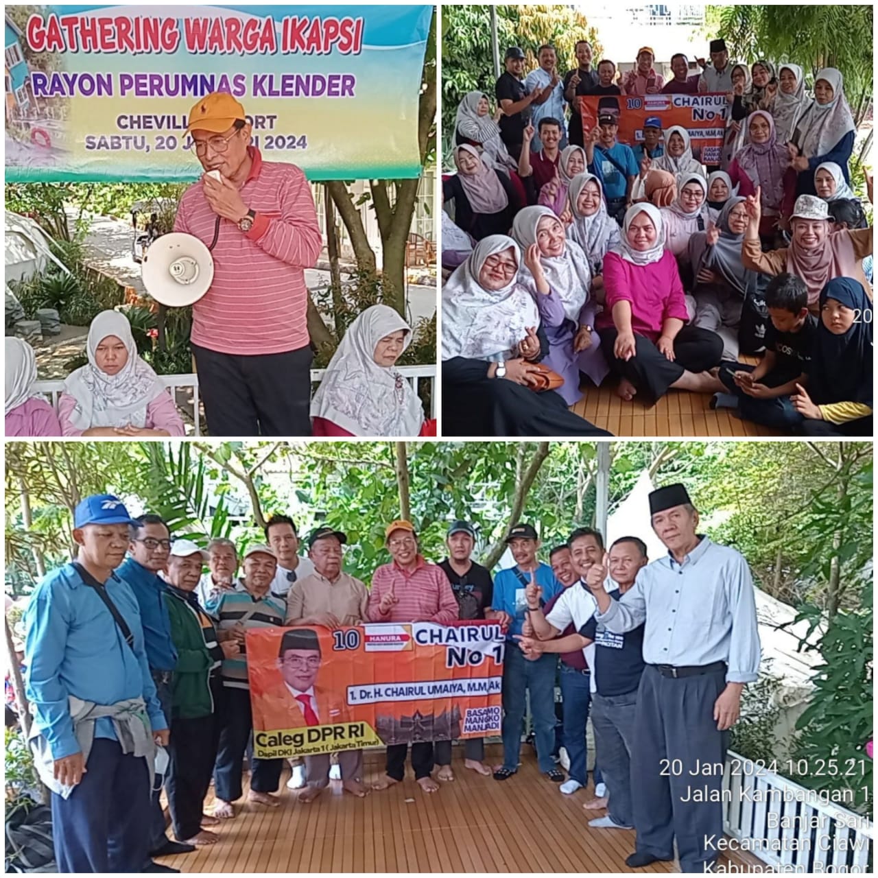 Indosiber.id – Chairul Umaiya Caleg DPR RI nomor urut 1 dari Partai Hanura ikut berdarmawisata dengan warga Ikatan Keluarga Pandai Sikek (IKAPSI) Rayon Perumnas Klender ke Chevilly Resort pada tanggal 20 Januari 2024.