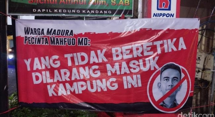 Penolakan warga Madura terhadap Gibran kemudian terlihat dari maraknya spanduk dan baliho yang berisikan kalimat-kalimat yang isinya tidak menghendaki Gibran ke Madura untuk melakukan kampanye Pilpres.