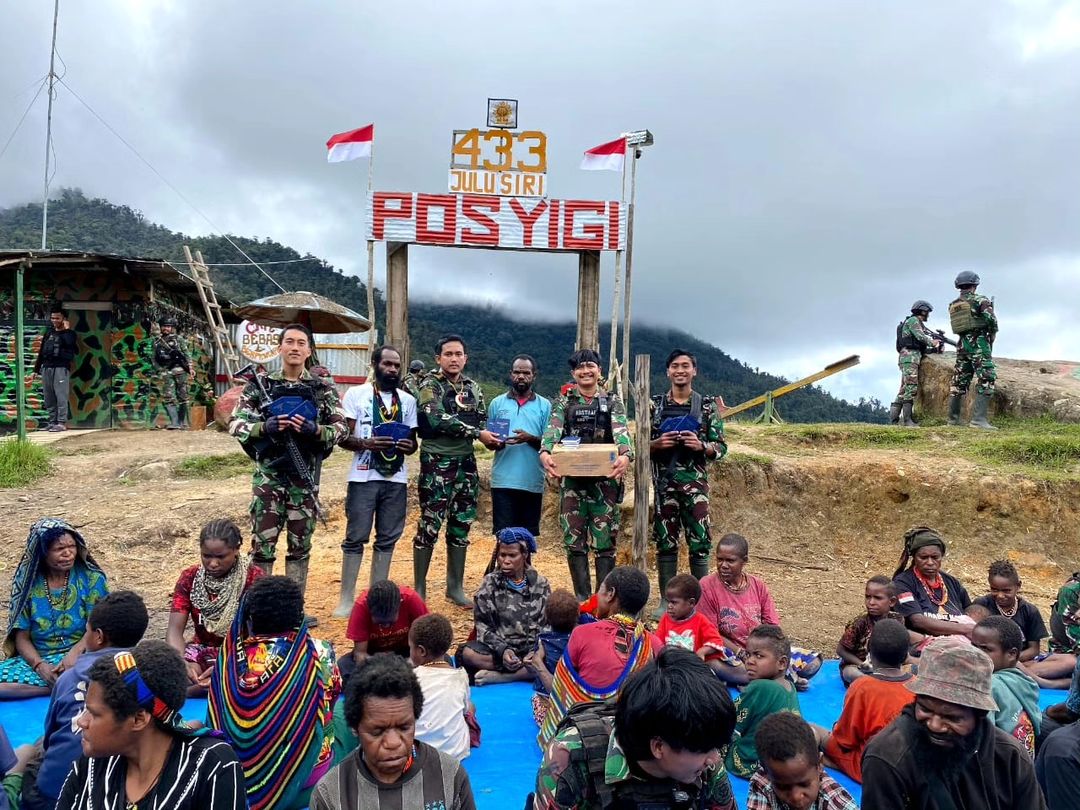 Indosiber.id – Jakarta. Prajurit TNI AD dari Satgas Yonif 433 Julu Siri Kostrad telah menyelenggarakan acara pembagian Alkitab dan makan bersama dengan masyarakat Distrik Yigi, Kabupaten Nduga, Papua Pegunungan. Kegiatan ini bertujuan untuk mempererat hubungan dengan masyarakat setempat serta meningkatkan kebersamaan di tengah-tengah kondisi rawan yang sering melanda daerah tersebut. Nduga Rabu (6/3/2024).