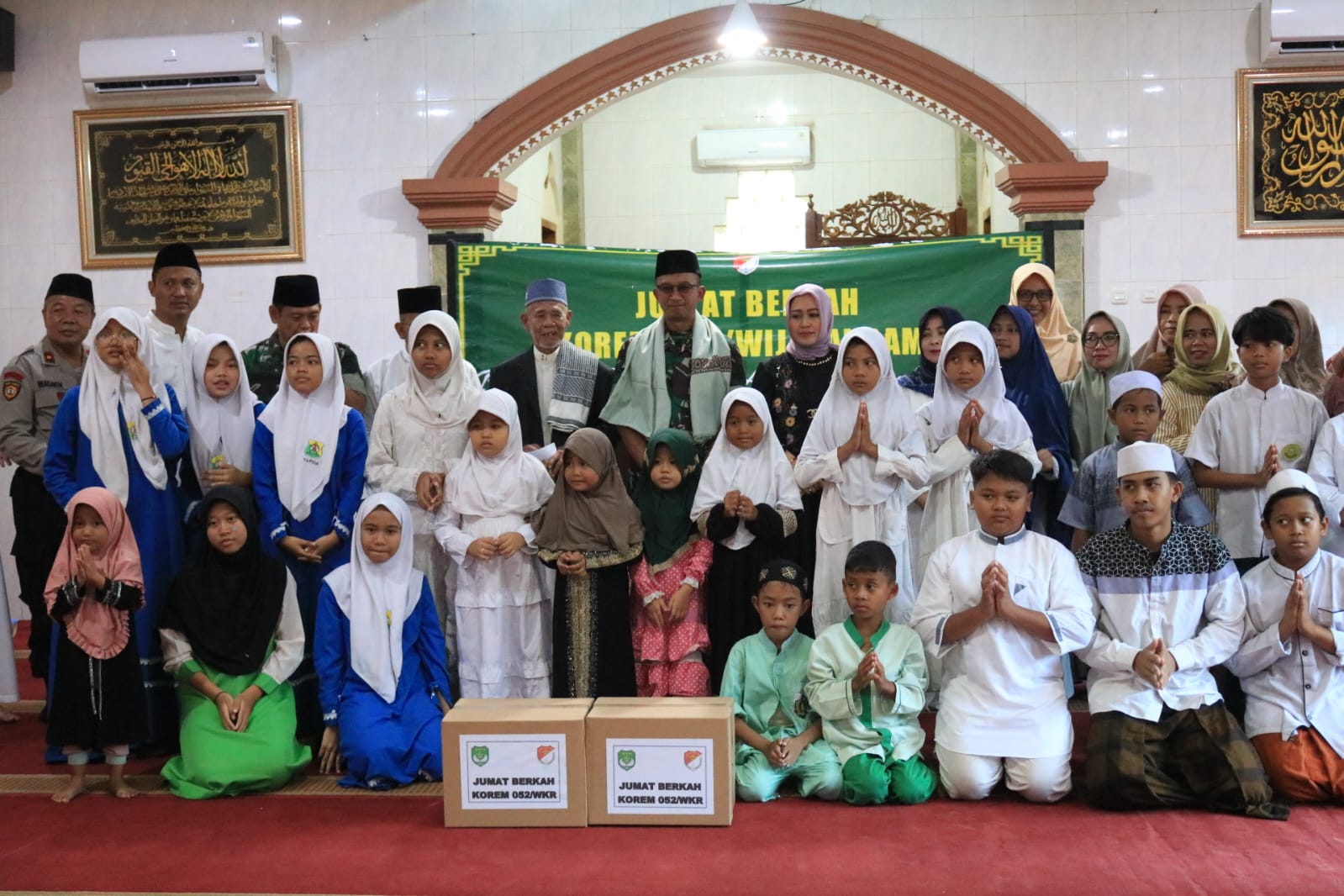 Kegiatan Jum’at Berkah ini di lakukan sebagai sarana silaturahmi dan komunikasi sosial serta tentunya untuk membantu kesulitan masyarakat di wilayah binaan Korem 052/Wkr.Kegiatan rutin setiap hari Jumat ini dengan memberikan bantuan sembako dan santunan.