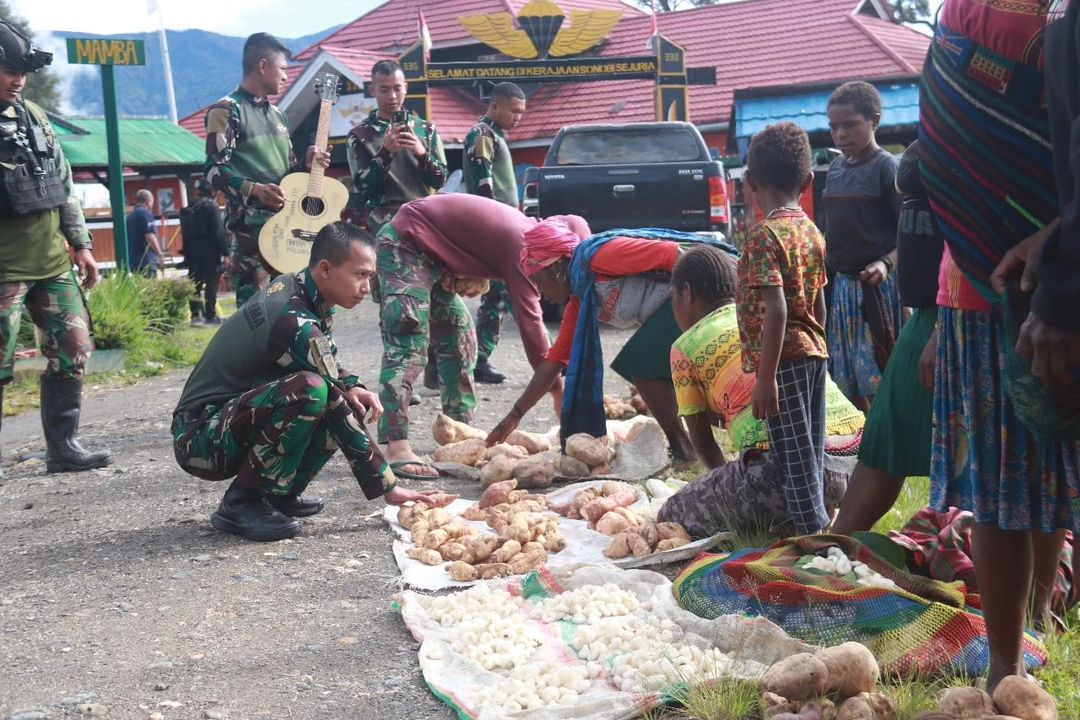Hari Pasar di Intan Jaya Telah Tiba, Satgas Yonif 330 Kostrad Borong Hasil Bumi Milik Warga