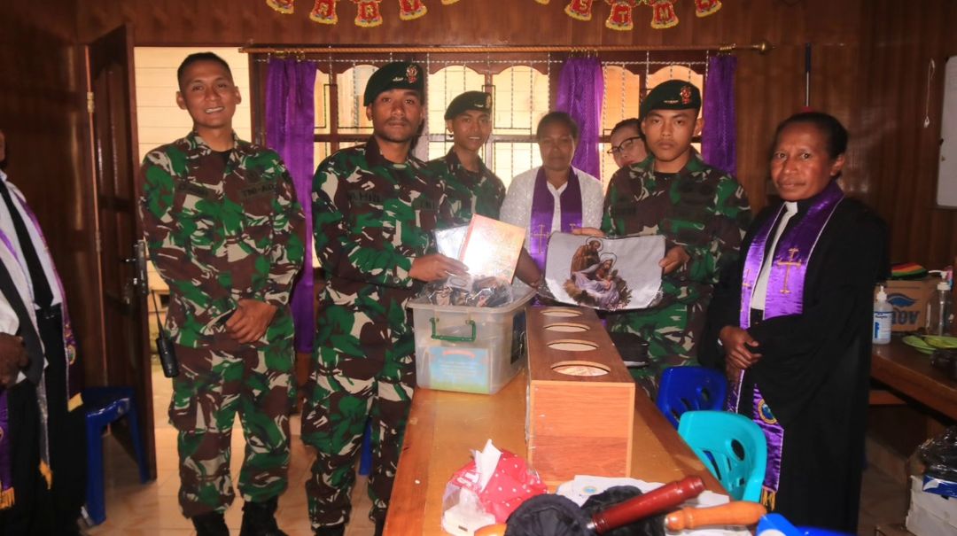 Indosiber.id – Jakarta. Di tengah suasana Minggu yang dipenuhi dengan cinta kasih, personel Pos Kout Ilaga yang dipimpin oleh Letda Chk Dani dari Satgas Pamtas RI-PNG Mobile Yonif 323 Buaya Putih Kostrad memberikan sentuhan kebaikan di Gereja Kristen Klasis Nabire Jemaat Eklesia Ilaga, Distrik Ilaga, Kabupaten Puncak, pada Minggu (17/03/2024).