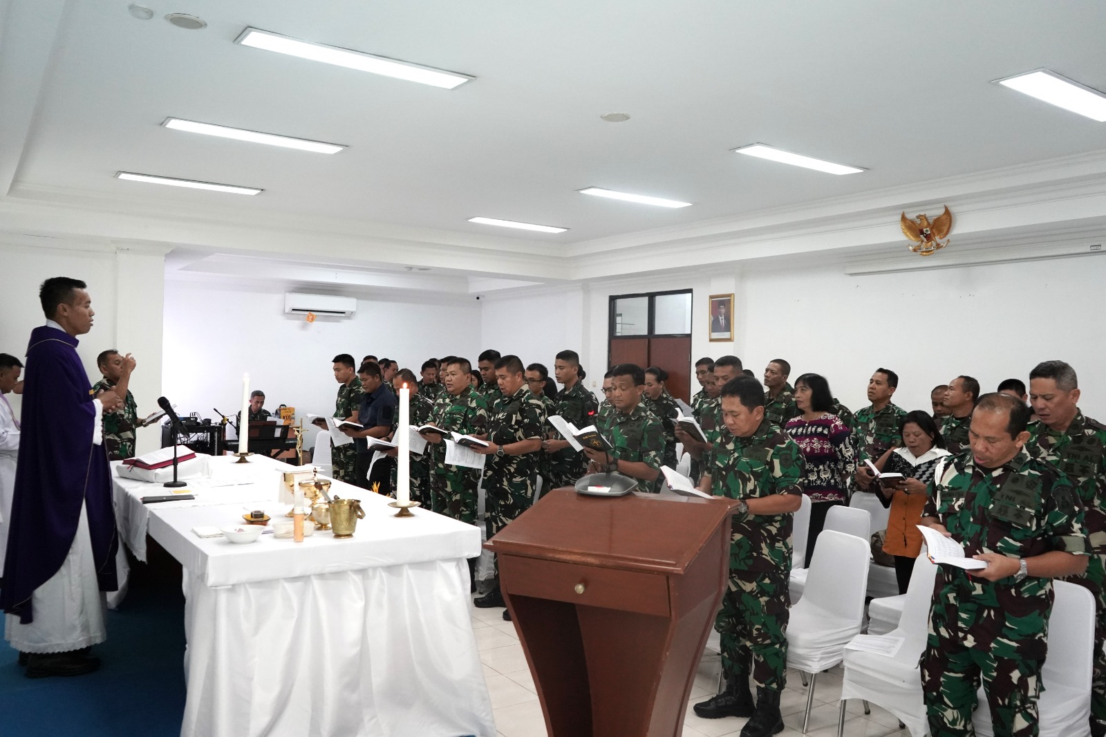 Indosiber.id, TNI Angkatan Laut, Koarmada RI, 22 Maret 2024, Kepala Staf Koarmada Republik Indonesia (Kaskoarmada RI) Laksamana Muda TNI Didong Rio Duto Purwo Kuntjoro, S.T., M.A.P., M.Tr.( Han). beserta Asisten Potensi Maritim (Aspotmar) Pangkoarmada RI Laksamana Pertama TNI Albertus Agung Priyo S dan Komandan Komando dan Latihan (Dankolat) Koarmada RI Laksamana Pertama TNI Endra Hartono, S.H. melaksanakan Misa Bersama dengan personel Katholik TNI Angkatan Laut Wilayah Jakarta, bertempat di gedung Andromeda, Kolat Koarmada RI, Kelapa Gading, Jakarta Utara, Jumat 22 Maret 2024.