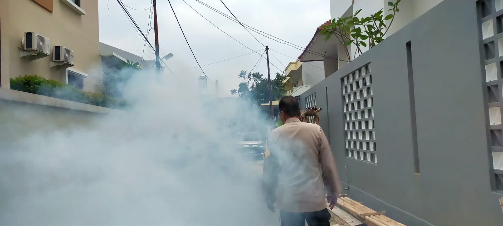 INDOSIBER.ID – BEKASI – Guna mencegah Penyakit Deman berdarah (DBD) akibat gigitan nyamuk Aedes aegypti yang pada saat ini sudah ada korbannya dengan inisiatif Ketua RW 06A Kel. Jaka Sampurna melaksanakan fogging atau pengasapan untuk mencegah perkembang biakan nyamuk DBD.