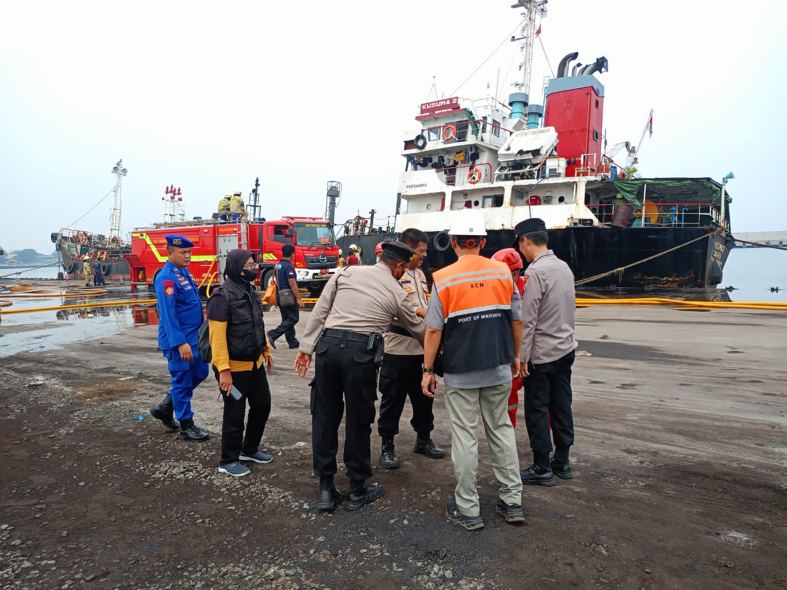 “Kami mengapresiasi setinggi-tingginya bagi KSOP Kelas II Marunda dan SUDIN Gulkarmat yang membantu dengan cepat pemadaman kebakaran kapal MT Kusuma II dipelabuhan” yang disampaikan bella humas KCN.