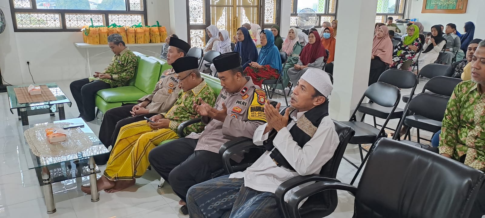 Kegiatan santunan yatim dan duafa di gedung graha bismilah group travel umroh dan haji dihadiri, Kanit Binmas Jatiasih Akp H Amirudin SH, Bhabinkamtibmas Jatimekar Aipda Rano, Babinsa Jatimekar Sertu Mursidi, Tokoh agama dan tokoh masyarakat.