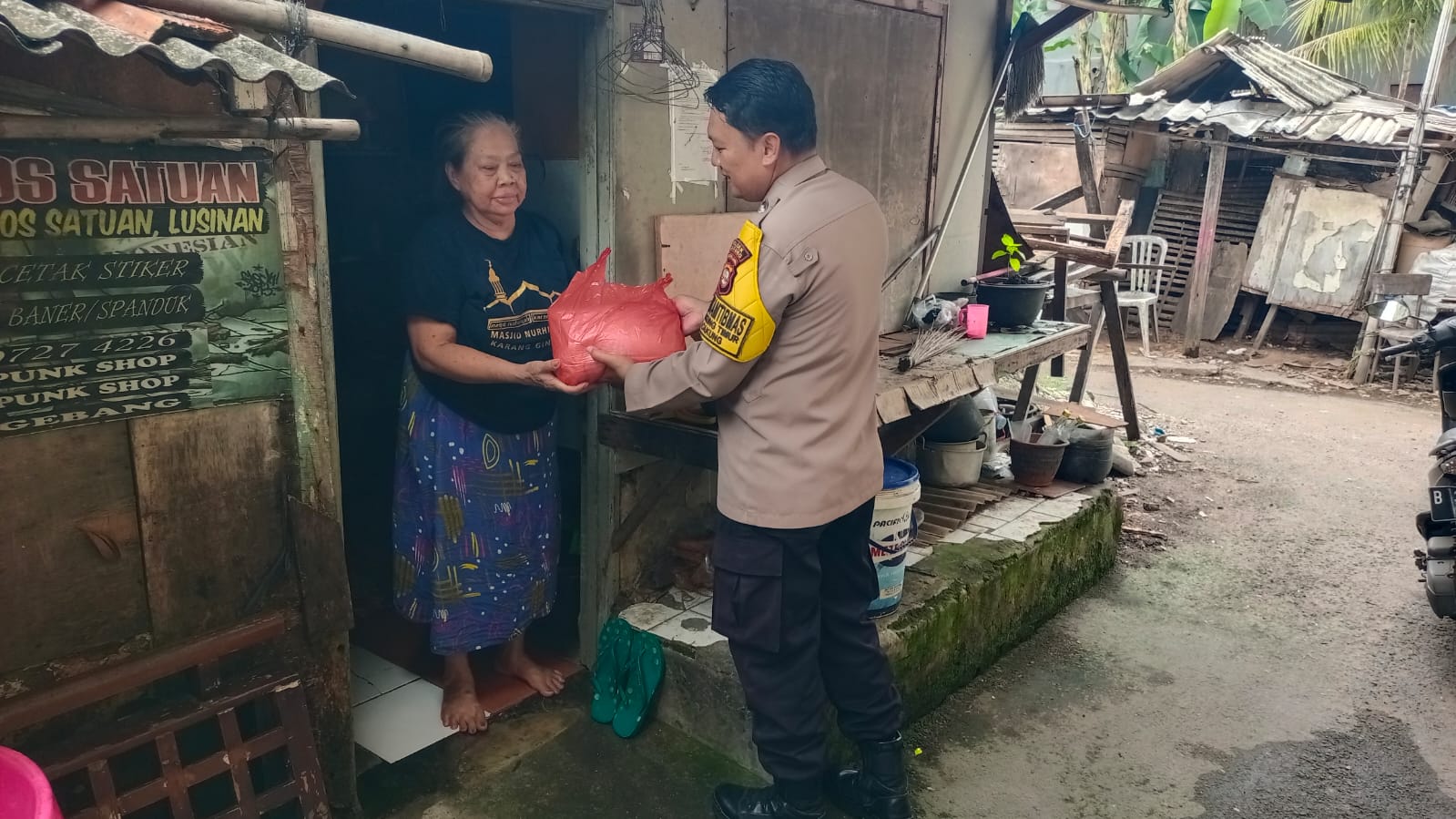 Sementara warga yang menerima bantuan tersebut, terasa terbantu oleh Pak Polisi yang sangat meringankan beban mereka.