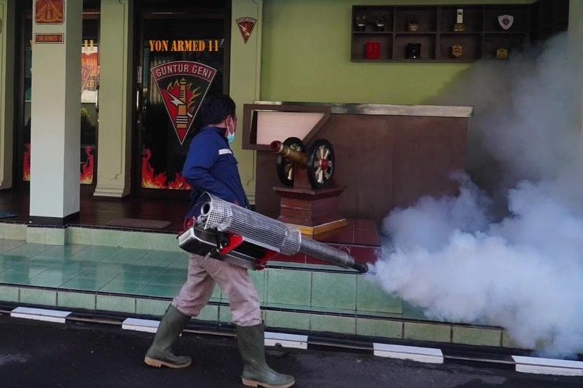 Tim Kesehatan Yonarmed 11 Kostrad melaksanakan fogging dengan menyisir setiap bagian di ruangan-ruangan yang ada di lingkungan asrama, selain itu fogging juga dilakukan di ruang terbuka serta saluran air yang diduga menjadi tempat persembunyian nyamuk terutama nyamuk pembawa penyakit Demam Berdarah (Aedes Aegypti).