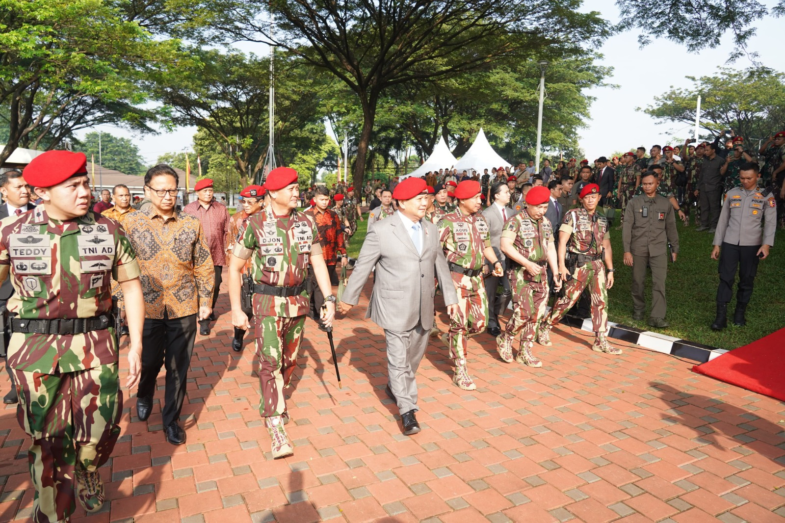 Upacara ini dipimpin langsung oleh Panglima TNI Jenderal TNI Agus Subiyanto, S.E., M.Si., dan dihadiri oleh sejumlah pejabat tinggi negara, termasuk Menteri Pertahanan RI Prabowo Subianto, Kapolri Jenderal Polisi Listyo Sigit Prabowo, M.Si., Kasad Jenderal TNI Maruli Simanjuntak, M.Sc. serta beberapa mantan Komandan Kopassus.