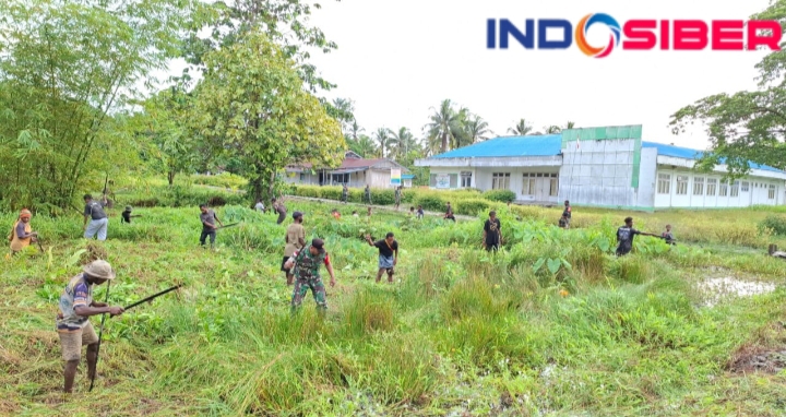 INDOSIBER.ID – Babinsa Koramil 1715-05/Batom Kodim 1715/Yahukimo melaksanakan kegiatan karya bhakti dengan membantu warga melaksanakan pembersihan lingkungan di Distrik Batom, Kabupaten Pegunungan Bintang, Rabu (26/6/2024). Para Babinsa tersebut turut serta dalam kegiatan membersihkan lingkungan guna menciptakan lingkungan yang bersih dan sehat bagi masyarakat setempat.