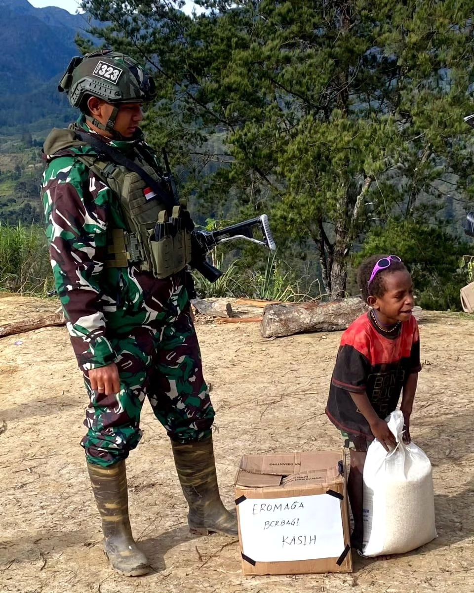Indosiber.id – Jakarta. Satgas Mobile Yonif 323 Kostrad Pos Eromaga mengadakan kegiatan pembagian sembako kepada warga di Kampung Eromaga, Distrik Omukia, Kabupaten Puncak, Papua. Sabtu (06/07/2024).