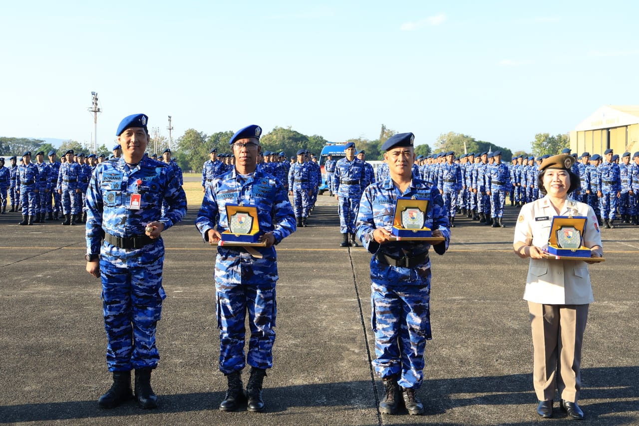 Selain memberikan penghargaan kepada prajurit TNI AU yang berprestasi, Marsma TNI Bonang Bayuaji juga memberikan piagam penghargaan kepada prajurit dan Aparatur Sipil Negara (ASN) yang akan memasuki purna tugas. Piagam penghargaan diberikan kepada Letda Kal Natalino Dos Santos, Letda Kal Muchammad Sjahrir, Pelda Sochibuddin dan Pns Herawati. (Pen Hnd)
