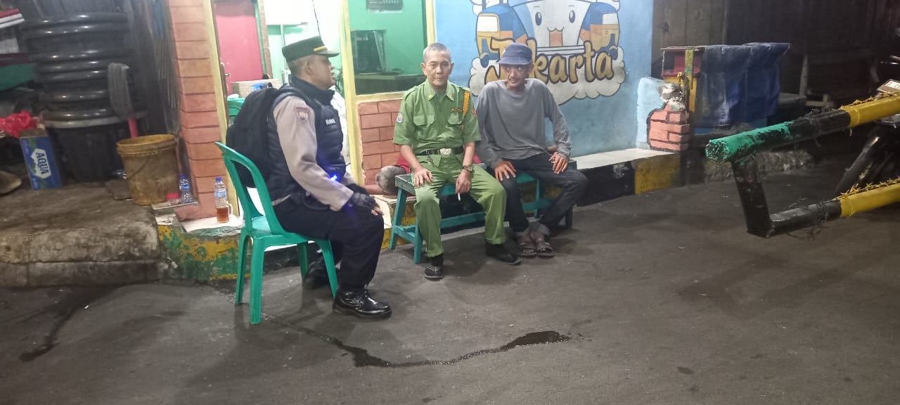 Akp Irawan Junaedi berkunjung ke Poskamling bertemu Aswandi selaku petugas Siskamling memberikan imbauan untuk mengantisipasi tawuran, curas, curat dan curanmor serta lakukan patroli secara berkala.