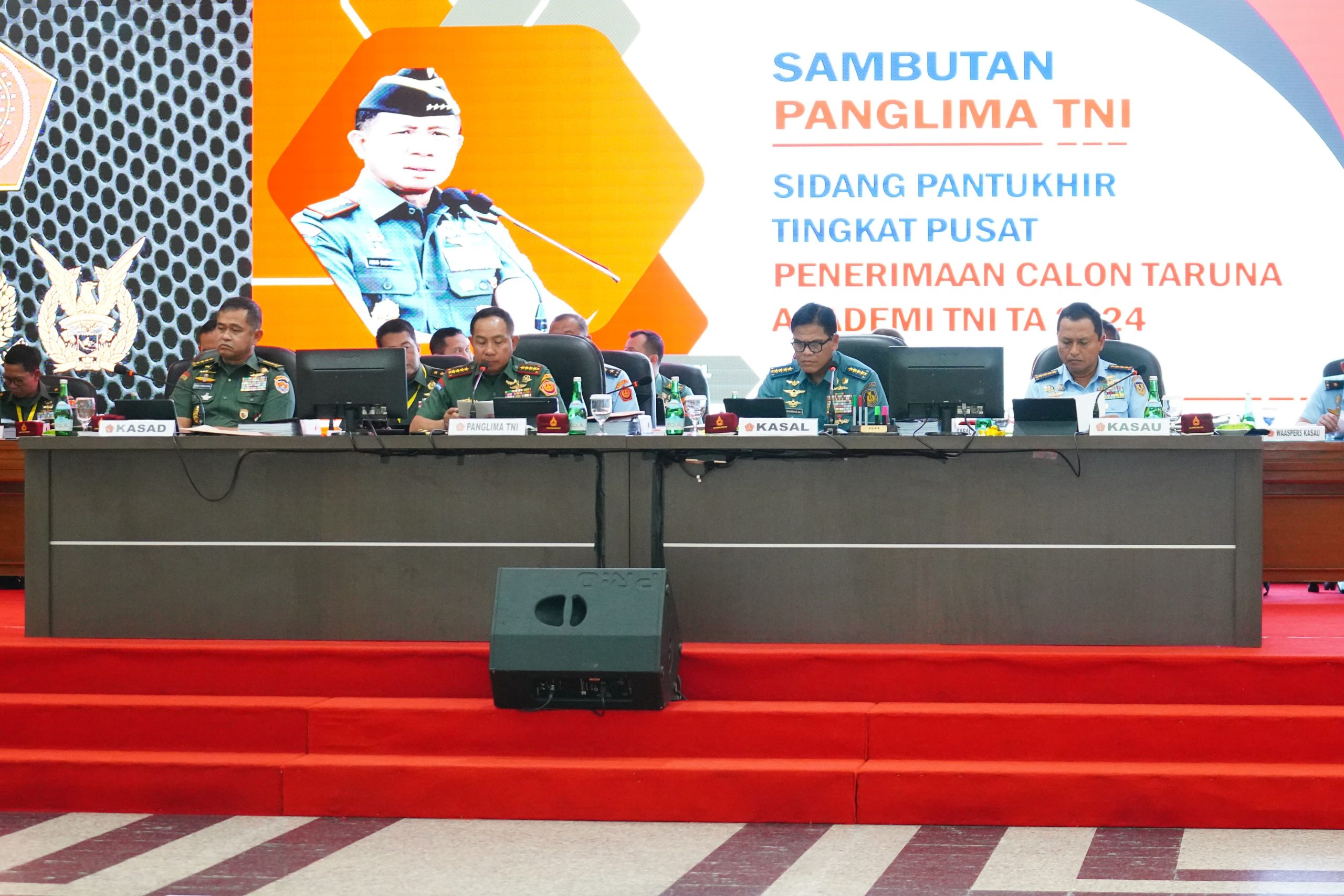 Indosiber.id – Puspen TNI. Panglima TNI Jenderal TNI Agus Subiyanto didampingi Kasad Jenderal TNI Maruli Simanjuntak, Kasal Laksamana TNI Muhammad Ali, dan Kasau Marsekal TNI Mohamad Tonny Harjono, memimpin Sidang Pantukhir Pusat penerimaan Taruna Akademi TNI TA 2024, bertempat di Gedung Lily Rochli, Akademi Militer, Magelang, Jawa Tengah, Kamis (25/7/2024).