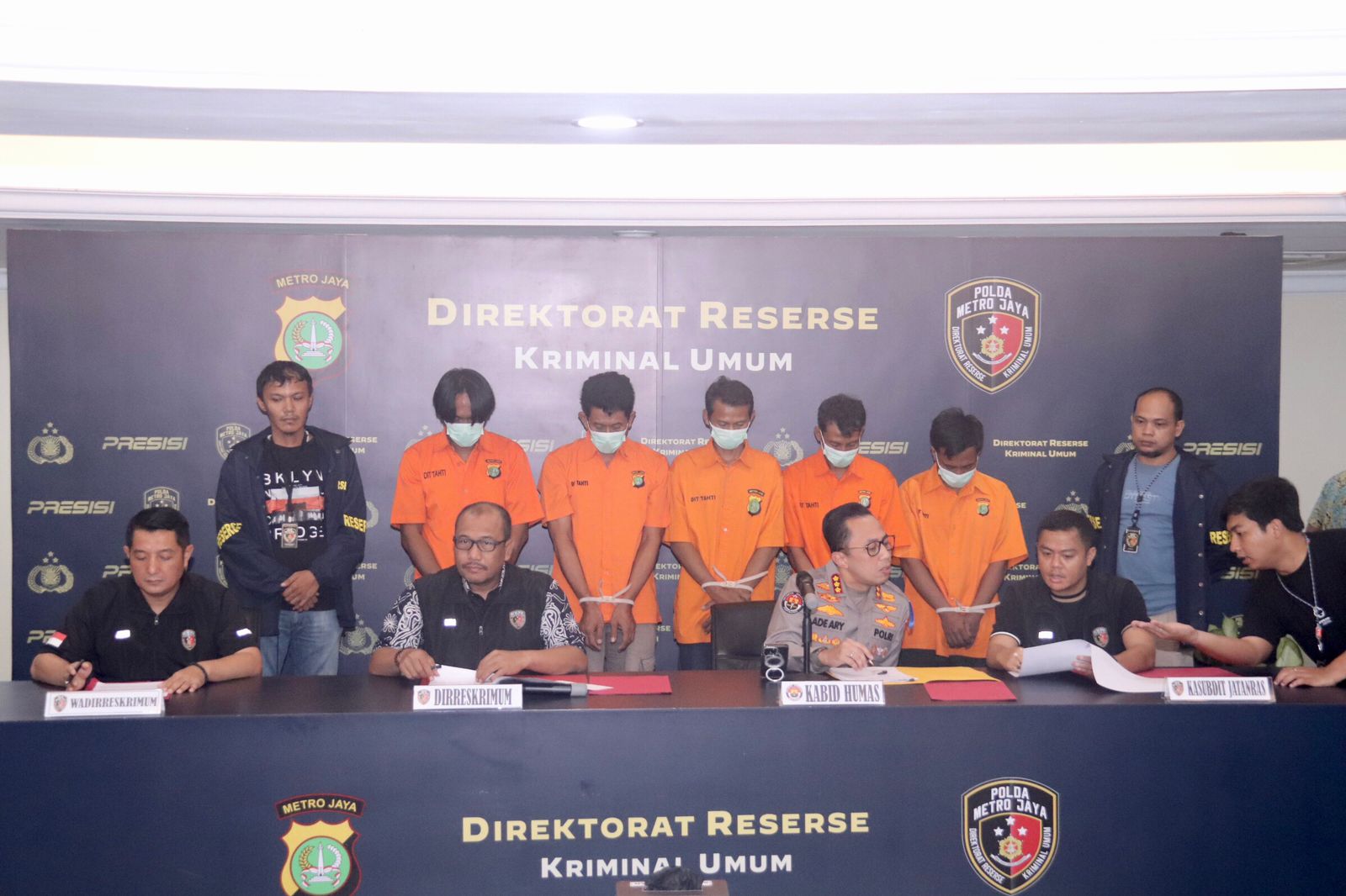 Turut hadir dalam Konfrensi Pers ini Wadirreskrimum Polda Metro Jaya AKBP. Aldi Subartono, Kasubdit Jatanras Ditreskrimum Polda Metro Jaya AKBP. Rovan Richard Mahenu, penyidik dan perwakilan dari korban pencurian Bajaj.