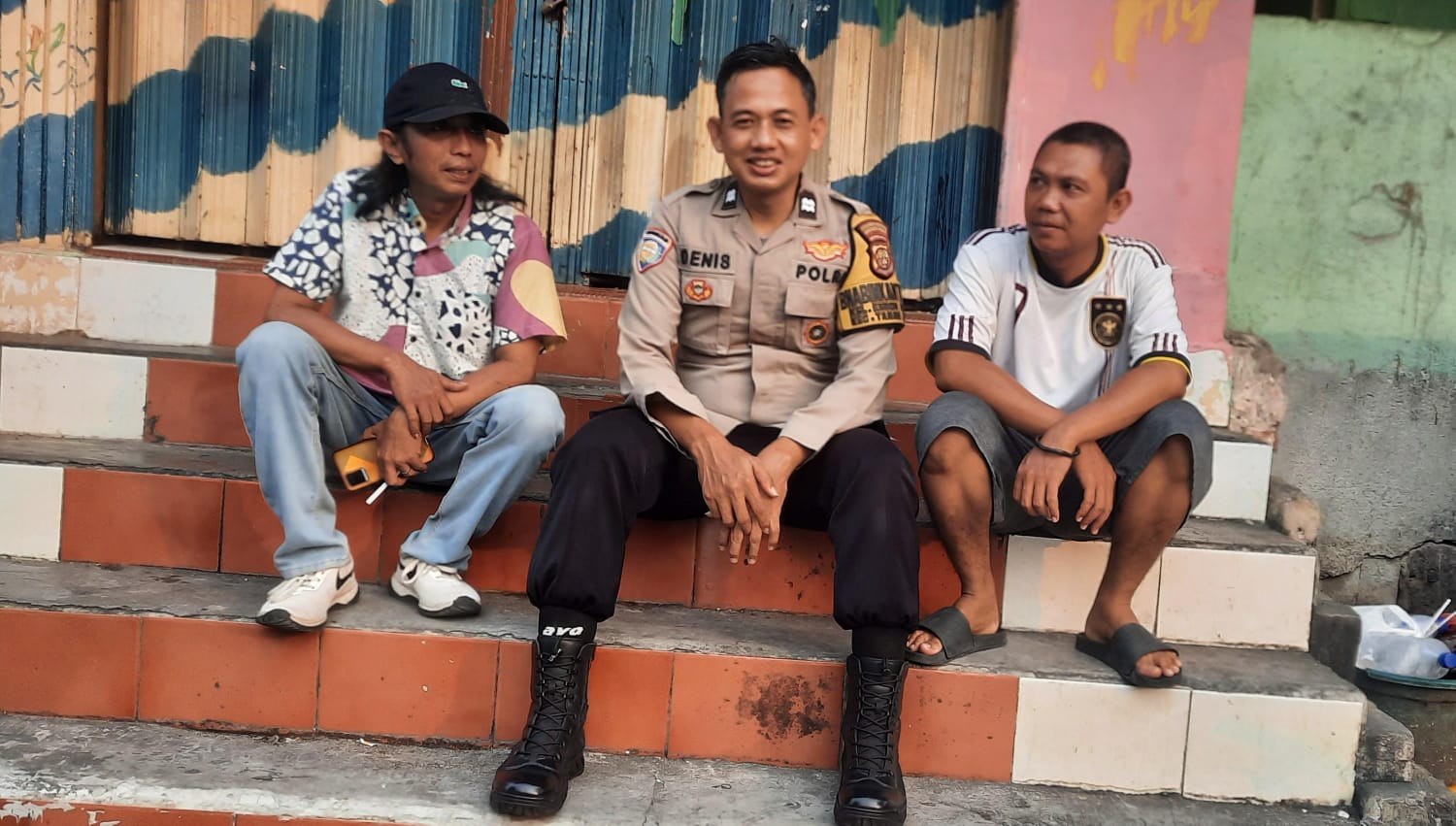 Aiptu Deny Sambil Nongkrong Berikan Imbauan Kamtibmas kepada warga agar selalu antisipasi tawuran, jangan menggunakan narkoba, jangan bermain judi online dan pastikan kewilayahan aman dan nyaman.