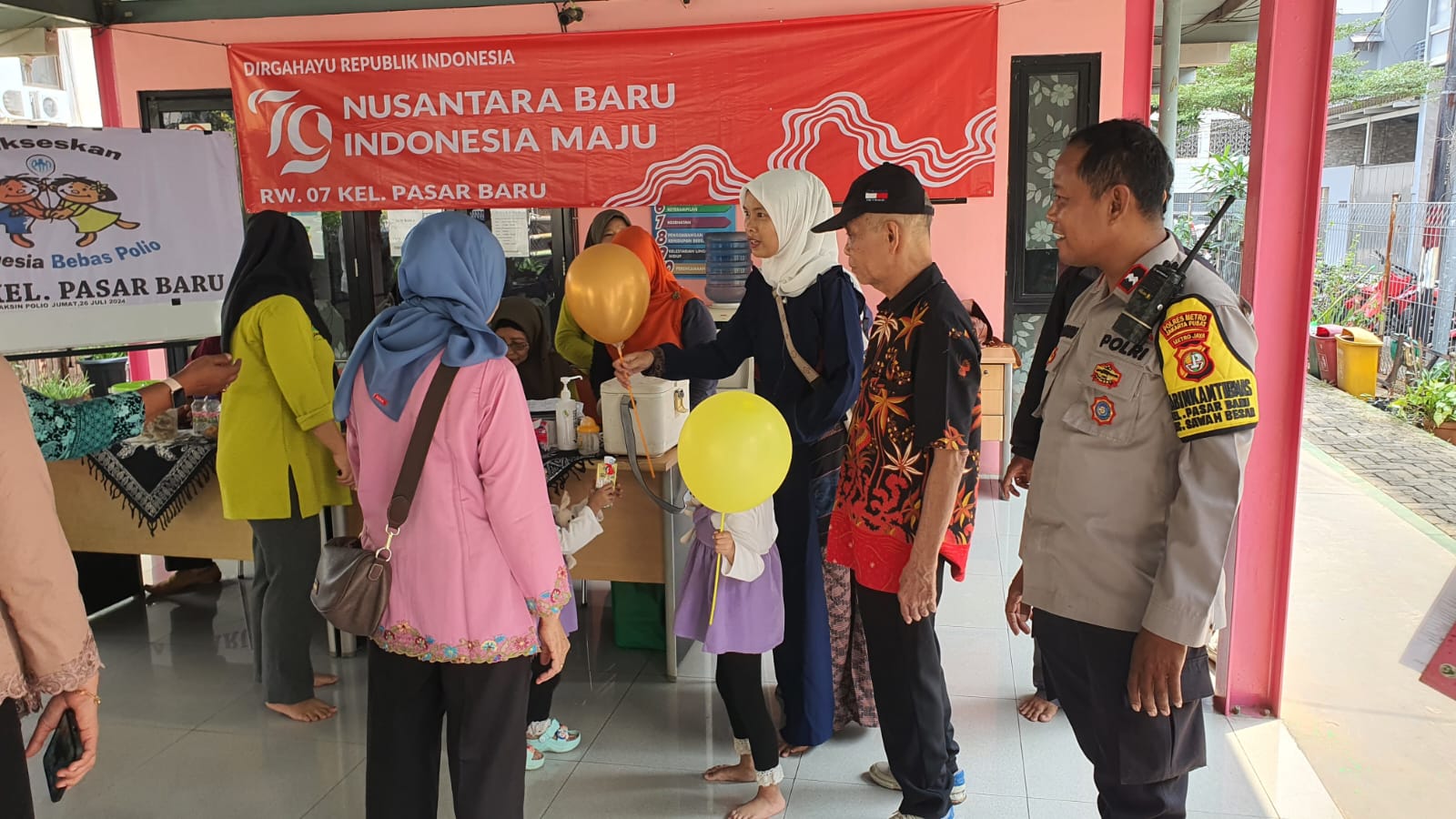 Indosiber.id – Jakarta Pusat – Anggota Binmas Polsek Sawah Besar Aipda Bambang melaksanakan kegiatan Patroli dan Sambang, adanya kegiatan masyarakat di Kantor sekretariat Jalan Krekot Jaya Molek Pasar Baru Sawah Besar berupa Imunisasi Balita warga mengingat kegiatan ini dilaksanakan serentak dilakukan di wilayah DKI Jakarta, Jum’at (26/7/2024)