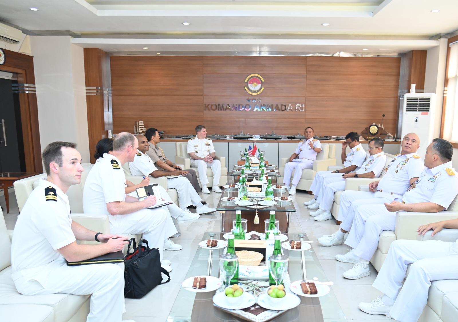 Indosiber.id – TNI Angkatan Laut, Koarmada RI, Jakarta 31 Juli 2024.Panglima Komando Armada Republik Indonesia (Pangkoarmada RI) Laksamana Madya TNI Dr. Denih Hendrata, S.E., M.M., CHRMP., menerima kunjungan Courtessy Call Komandan Armada ke-7 Angkatan Laut Amerika Serikat (Commander of U.S. Seventh Fleet), Vice Admiral Fred W. Kacher, bertempat di Mako Koarmada RI, Jakarta, Rabu 31 Juli 2026.