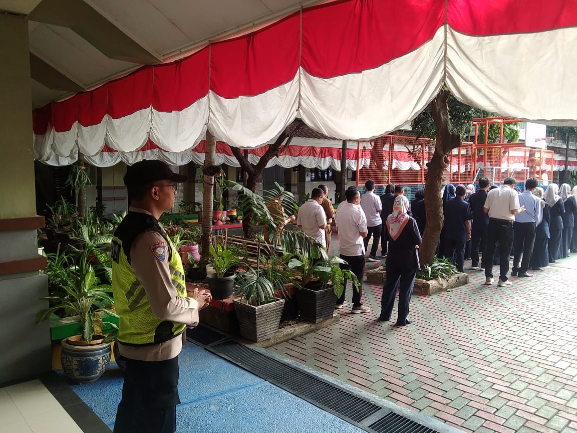 Aipda Wisnu Saputra Mengikuti Upacara Bendera Di SMA Negeri 77 Jakarta