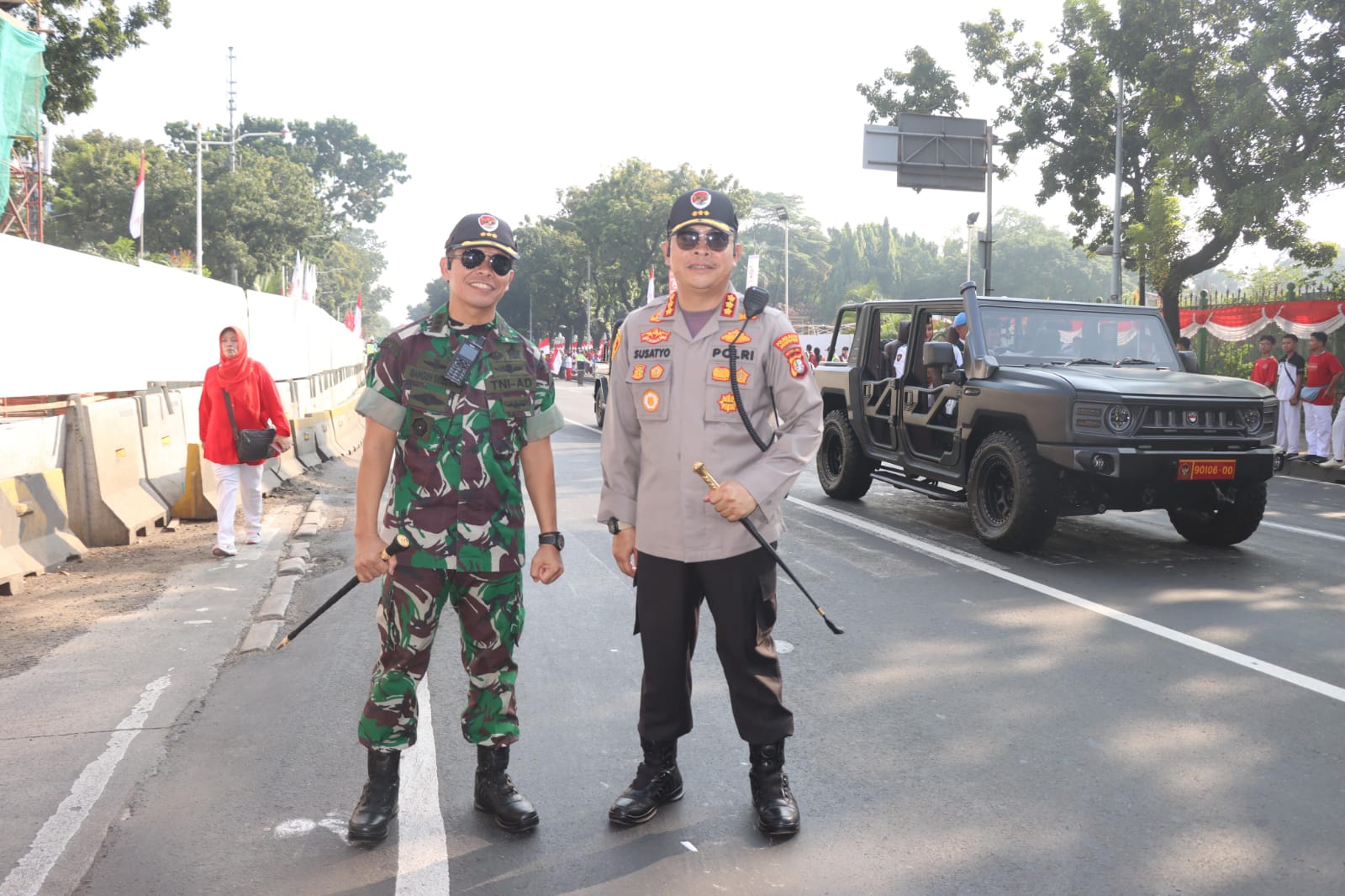 Indosiber.id – Jakarta Pusat_Dandim 0501/JP Kolonel Bangun I.E. Siregar, S.H., MIPOL bersama Kapolres Metro Jakarta Pusat Kombes Pol Susatyo Purnomo Condro,S.H.,S.I.K.,M.SI. laksanakan pengamanan Prosesi Kirab Bendera Pusaka Merah Putih dan Teks Naskah Proklamasi, yang dipindahkan dari Monas Ke Ibu Kota Nusantara (IKN) bertempat di Jalan Lapangan Monas, Gambir, Kecamatan Gambir, Jakarta Pusat. Sabtu (10/8/2024).
