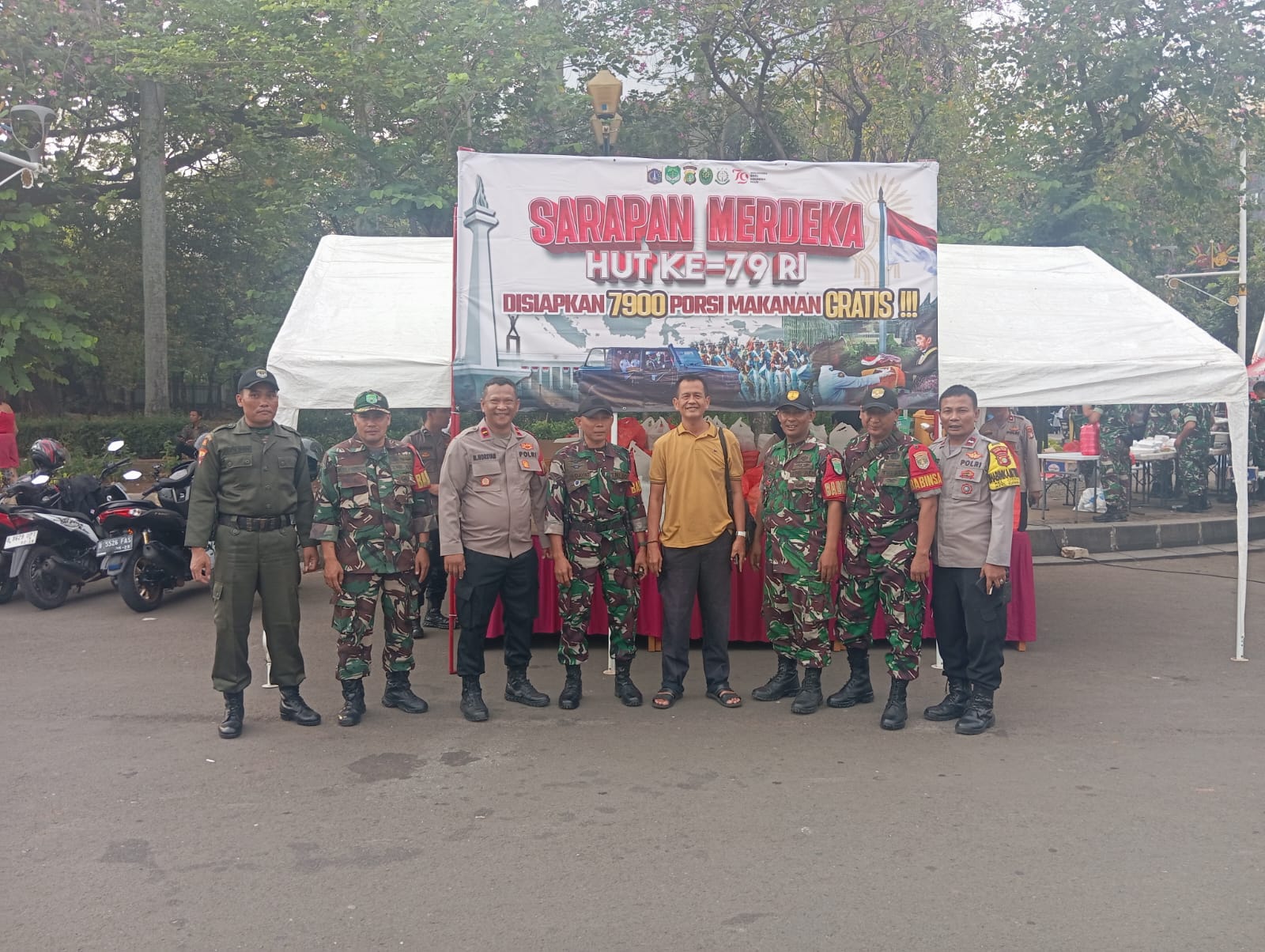 Kegiatan tersebut juga dibantu oleh Personil dari Kodam Jaya dan Kodim Jakarta Pusat. Selanjutnyta Sarapan Merdeka dibagikan kepada pengunjung Monas ataupun pengguna jalan yang melintas di Jalan Merdeka Barat.