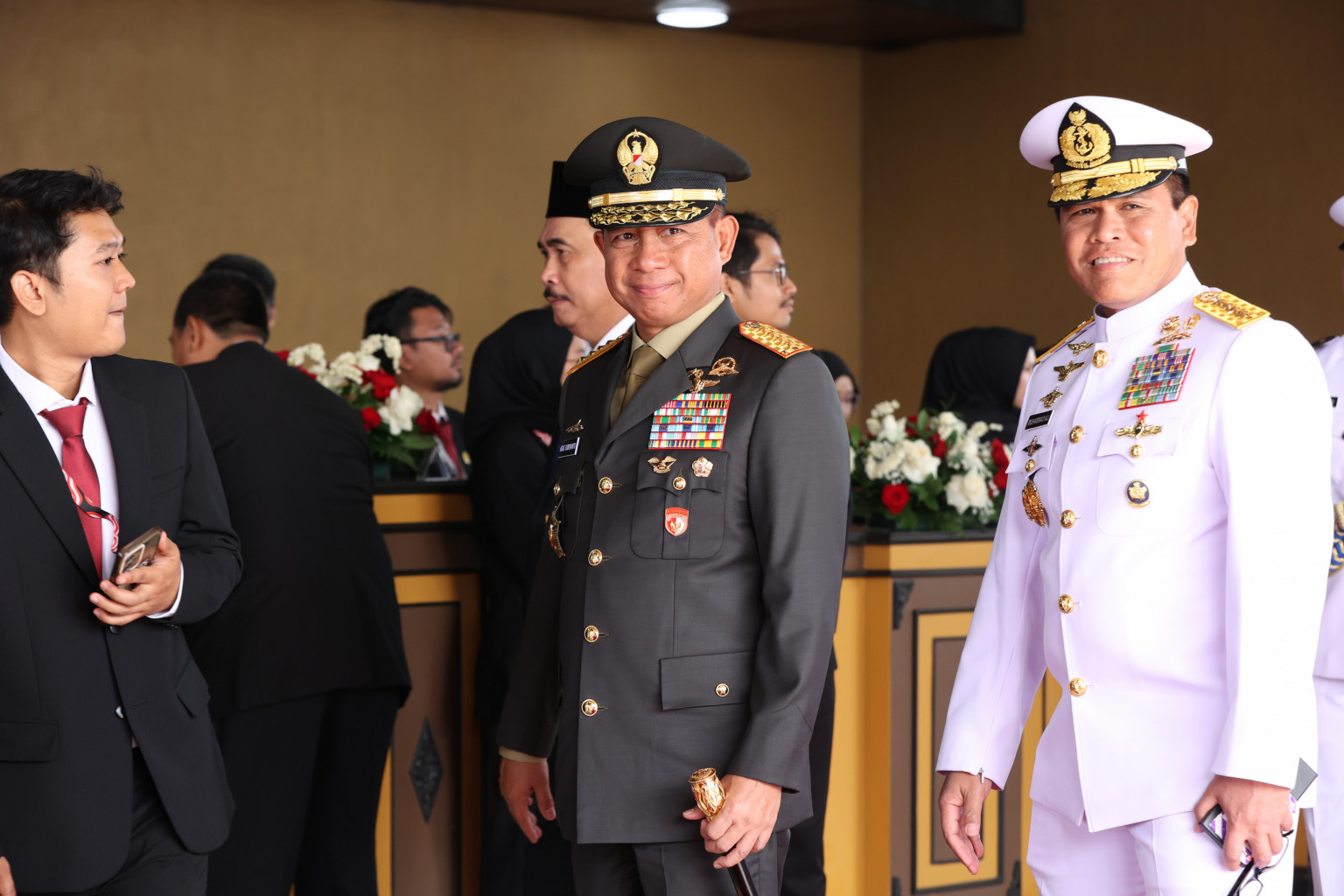 Indosiber.id – Puspen TNI. Panglima TNI Jenderal TNI Agus Subiyanto mendampingi Presiden RI Joko Widodo memimpin kegiatan Apel Kehormatan dan Renungan Suci, bertempat di Taman Kusuma Bangsa, Ibu Kota Nusantara (IKN), Penajam Paser Utara, Kalimantan Timur, Sabtu (17/8/2024).