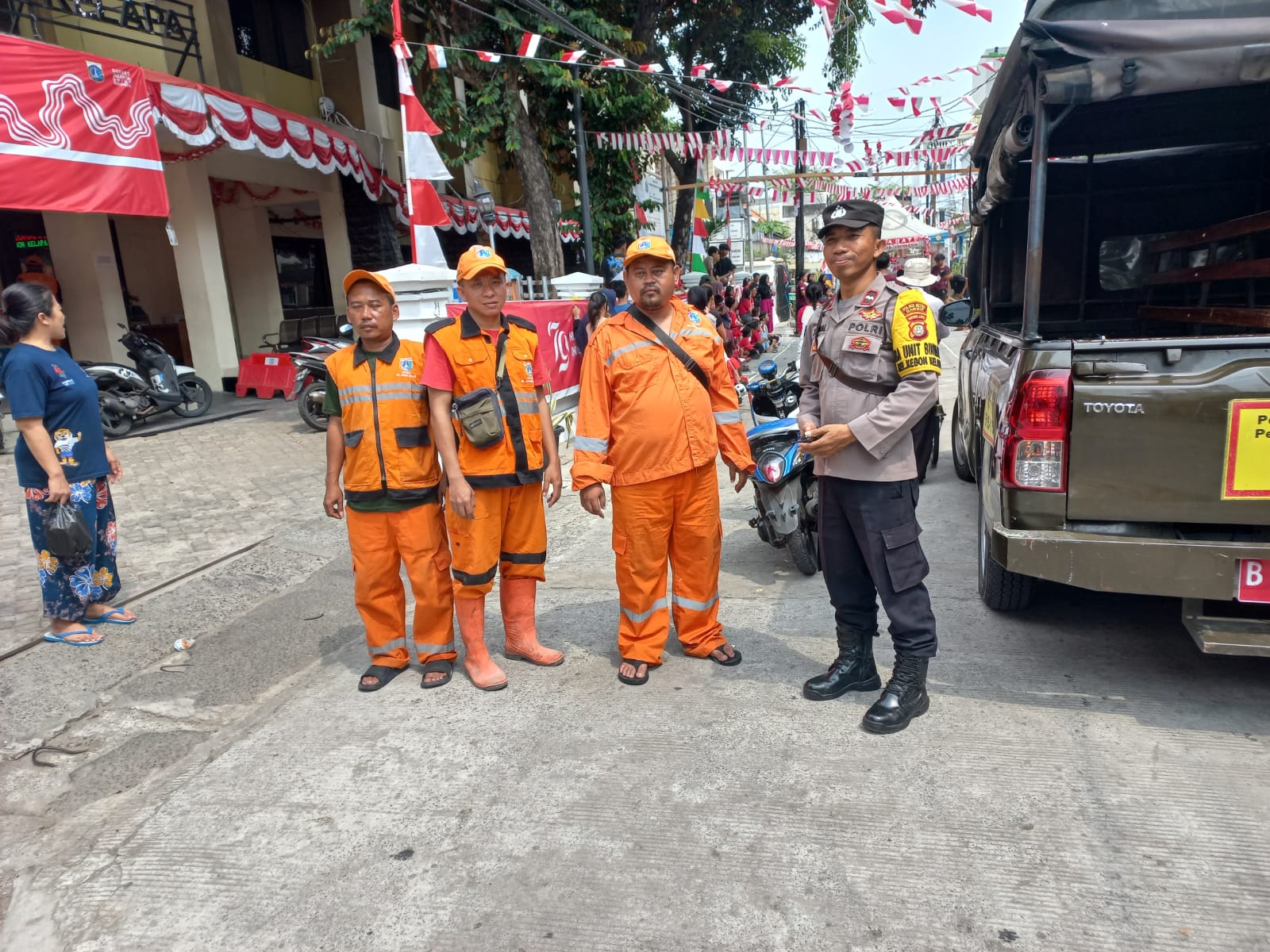 Indosiber.id – Jakarta Pusat – Anggota Staf Binmas Kebon Kelapa Aipda Zaenal Melakukan monitoring kegiatan lomba kemerdekaan HUT RI ke 79 di Kelurahan Kebon Kelapa Gambir. Sabtu (17/8/2024)