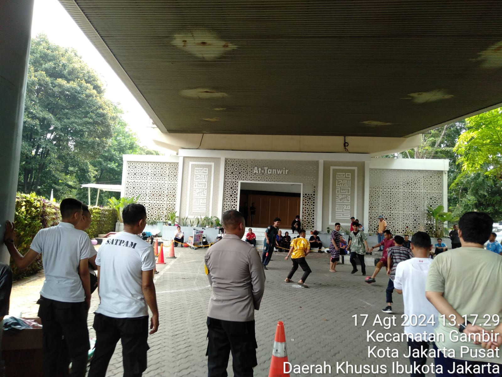 Indosiber.id – Jakarta Pusat – Anggota Patroli Unit Samapta Gambir Aipda Erik dan Aipda Istomo memantau kegiatan Hari Kemerdekaan warga Petojo Utara. Sabtu (17/8/2024).