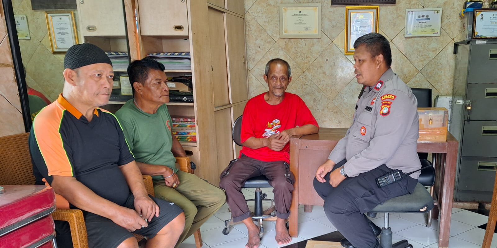 Indosiber.id – Jakarta Pusat – Aiptu Anwarudin Anggota Asisten Binmas Polsek Sawah Besar melaksanakan kegiatan sambang wilayah di pemukiman dan bertemu dengan warga yang salah satunya bernama bapak Surya di Pos RW 02 jalan Pintu Air V Pasar Baru Sawah Besar, Selasa (20/8/2024).