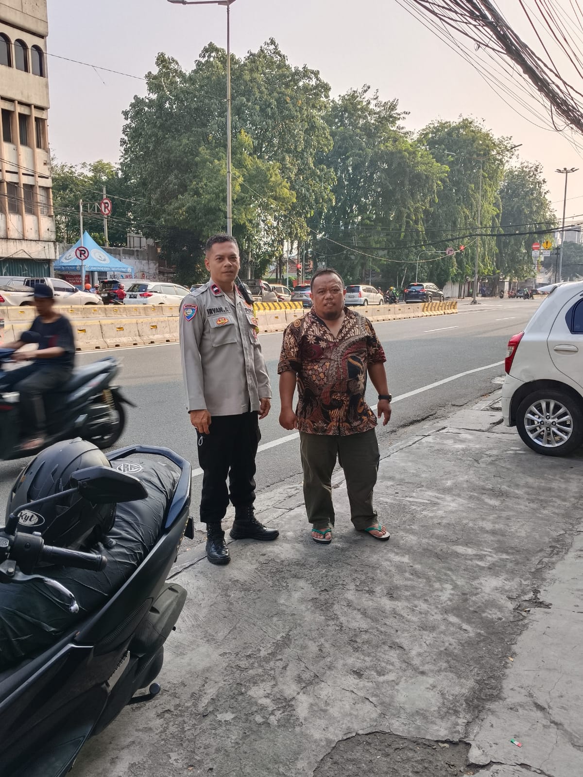 Sekitar 20 orang anak sekolah berjalan di sepanjang trotoar Jl. KH. Hasyim Ashari. Melihat hal tersebut Aipda Irvan segera menghimbau agar anak sekolah tersebut pulang karena dapat menimbulkan potensi tawuran pelajar atau pun kejahatan lain.