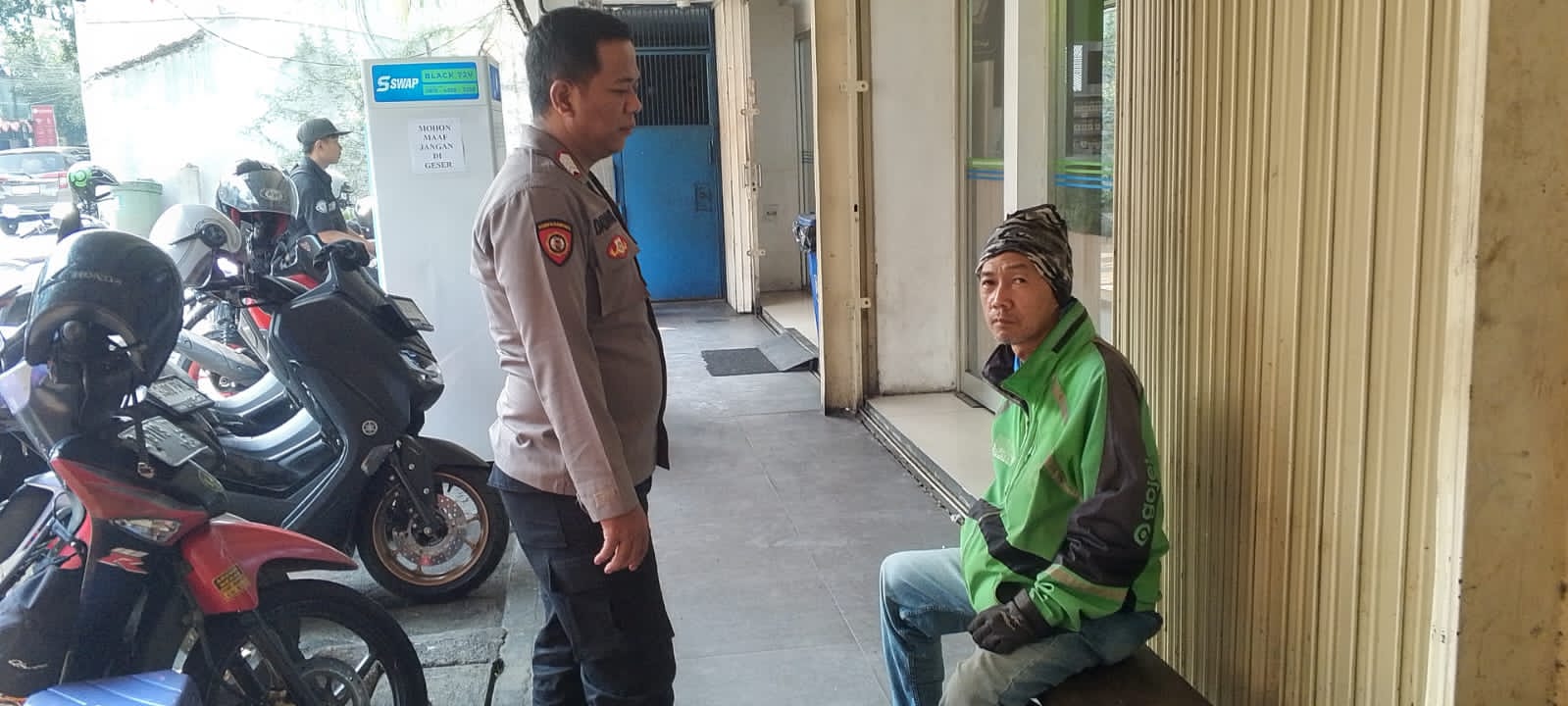 Bripka Dadang juga memberikan pesan kepada Ojek Online yang sedang beristirahat agar menjaga keamanan dan memelihara situasi yang kondusif. Dan jika membutuhkan kehadiran Polisi segera menghubungi Binmas Polsek Metro Gambir atau Call center 110.