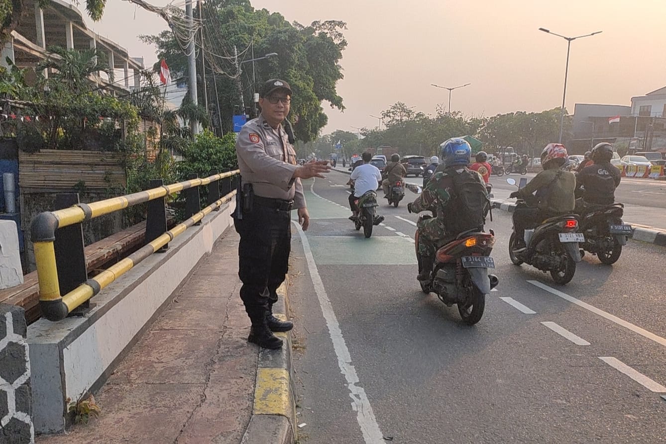 Menjelang jam pulang kantor banyak terjadi kemacetan. Anggota Sabhara Polsek Cempaka melaksanakan pengaturan lalu lintas di beberapa titik jalan di wilayah Cempaka Putih.