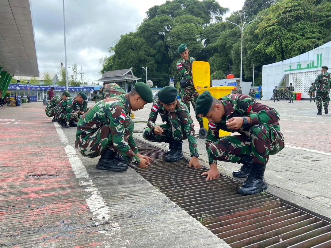Prajurit Satgas Pamtas Yonarmed 11 Kostrad Gelar Aksi Bersih-Bersih di Pelabuhan Semayang Balikpapan