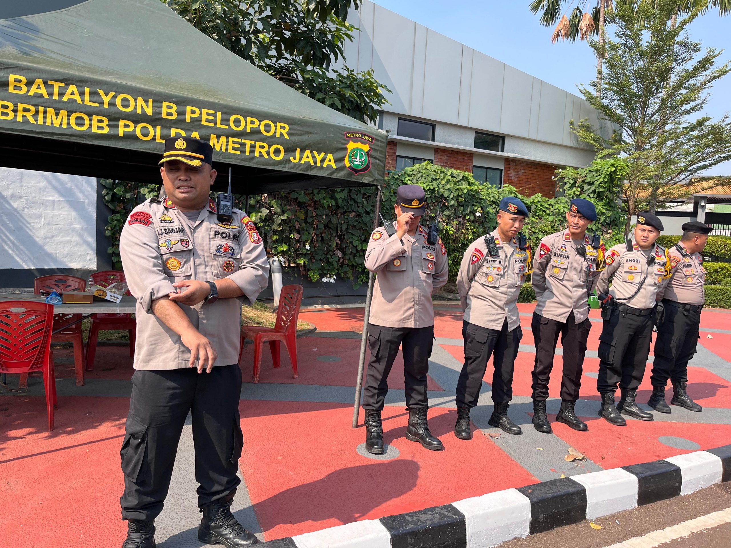 Kompol Sadjab berikan arahan pada saat apel di Pintu Belakang Gedung DPR RI kepada personel kedepankan humanis dalam melakukan pengamanan unras, hindari kekerasan, apabila massa datang segera lakukan tirai dan pengaturan lalu lintas, jaga kesehatan dan sikap tampang serta kekompakan dan jaga keselamatan, jangan ada menggunakan senpi serta laksanakan tugas dengan penuh tanggung jawab.