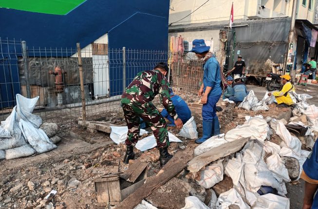 Indosiber.id – Gambir_Babinsa Koramil 04/Gambir Serka Siswanto bersama Sudin Tata Air bahu membahu melaksanakan pengerukan tanah serta penormalan saluran air, bertempat dikawasan pasar Petojo Ilir Jl. Sadar IV RT. 06 RW. 04, Kel. Petojo Utara, Kec. Gambir, Jakarta Pusat. Sabtu (31/8/2024).