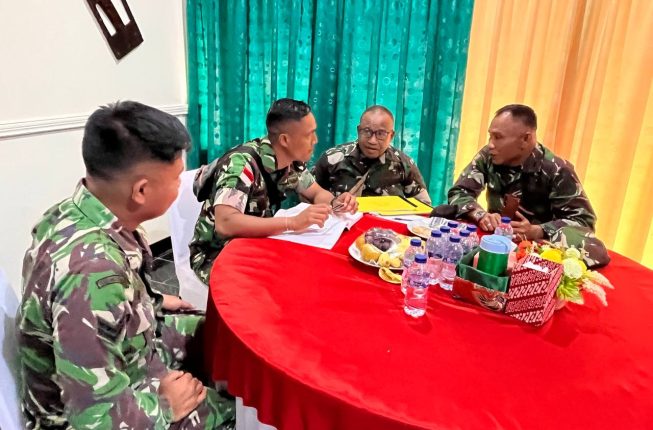 Indosiber.id – Timika – Tim verifikasi Korem 174/ATW dipimpin Kasi Intel Kasrem 174/ATW Letkol Inf M. Ali Akbar, S.I.P melaksanakan verifikasi (pemeriksaan kebenaran laporan) yang dibuat oleh Kodim 1710/Mimika dalam rangka persiapan serah terima jabatan Dandim. Rombongan diterima langsung oleh Dandim 1710/Mimika Letkol Inf Dedy Dwi Cahyadi didampingi Perwira Staf dan anggota, bertempat di Makodim 1710/Mimika Jl. Agimuga Mile 32 Distrik Kuala Kencana, Kab. Mimika, Senin (16/09/2024).
