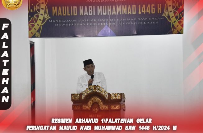 Indosiber.id – Resimen Arhanud 1/F Dam Jaya mengadakan peringatan Maulid Nabi Muhammad SAW di Masjid Nurul Hikmah dengan tema “Meneladani Akhlak Nabi Muhammad SAW Dalam Mewujudkan Personel TNI-AD yang Religius”. Senin (16/09/2024).
