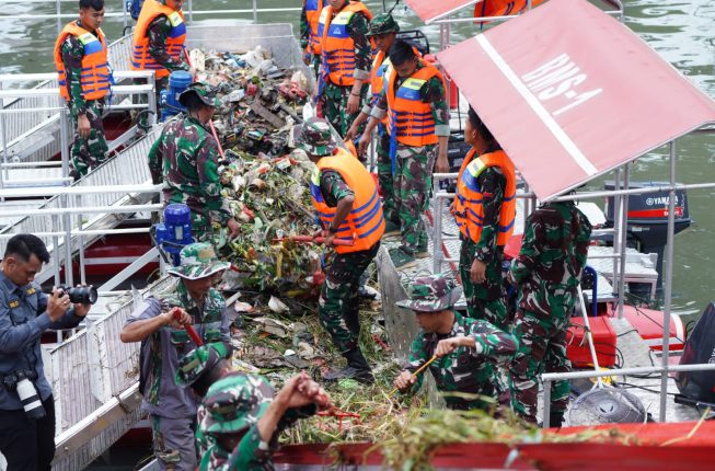 Indosiber.id – Puspen TNI. Panglima TNI Jenderal TNI Agus Subiyanto diwakili Kasad Jenderal TNI Maruli Simanjuntak meninjau kegiatan Karya Bakti Pembersihan Sungai Ciliwung dalam rangkaian HUT Ke-79 TNI Tahun 2024, bertempat di Sungai Ciliwung Jembatan Besi Sektor Tambora, Jakarta Barat, Minggu (13/10/2024).