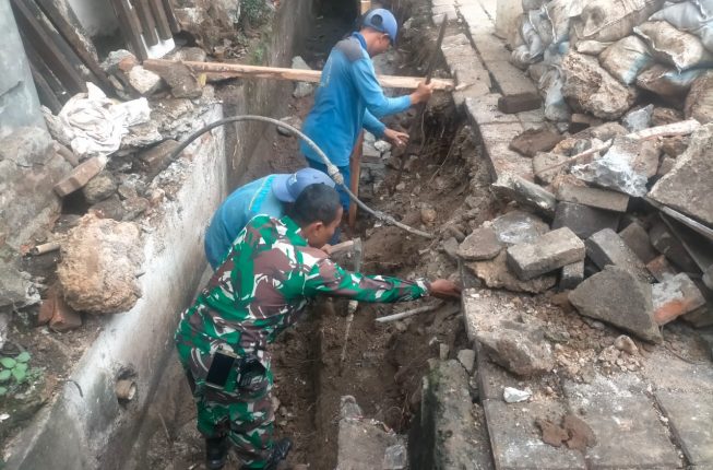 Babinsa Koramil 05/Tanah Abang Bersama Sudin Tata Air Laksanakan Perbaikan Selokan Air