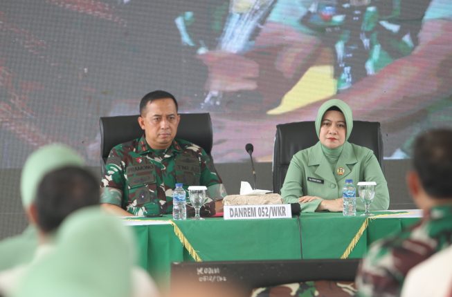 Indosiber.id – Tangerang, Jumat 15 November 2024 – Komandan Korem (Danrem) 052/Wijayakrama, Brigjen TNI Krido Pramono, S.H., M.Si., didampingi Ketua Persit KCK Koorcab Rem 052 PD Jaya, Ny. Syanti Krido Pramono, melaksanakan kunjungan kerja ke Kodim 0510/Tigaraksa,Kabupaten Tangerang. Kegiatan ini dihadiri sekitar 250 personel Kodim beserta anggota Persit.Kegiatan ini dilaksanakan di Aula Darmawangsa, Kodim 0510/Tigaraksa, yang berlokasi di Jl. Atik Soehardi No.1, Komplek Pemkab Tigaraksa, Kelurahan Kadu Agung, Kecamatan Tigaraksa, Kabupaten Tangerang.