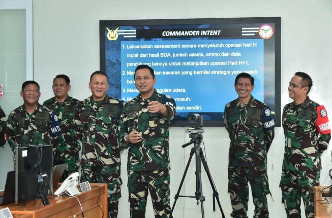 Indosiber.id – Makassar – Kepala Staf Angkatan Udara (Kasau) Marsekal TNI M. Tonny Harjono, S.E., M.M., meninjau pelaksanaan latihan Wargaming Komando Tugas Udara Gabungan (Kogasudgab) Bravo saat Geladi Posko Latihan Angkasa Yudha 2024, bertempat di Sekolah Staf dan Komando Angkatan Udara (Seskoau), Lembang, Selasa (19/11/2024).