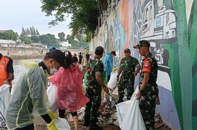 Indosiber.id – Kodim 0505/Jakarta Timur – Bertempat di Bantaran Sungai Ciliwung Rt. 002 Rw. 004 Kel. Bidara Cina Kec. Jatinegara Jakarta Timur, Babinsa Koramil 01/Jatinegara bersama warga di bantu anggota PPSU melaksanakan kegiatan karya bhakti membersihkan sampah yang menumpuk dan rumput rumput liar yang berada di dinding bantaran sungai Ciliwung, Jumat (03/01/25).