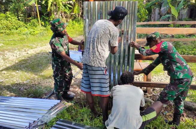 Indosiber.id – Puncak Jaya – Dalam rangka mengimplementasikan 8 Wajib TNI yang kelima, Babinsa Pos ramil 1714-07/Fawi, Sertu Agus Bonggoibo bersama masyarakat melaksanakan Karya Bhakti pembuatan pagar gereja Kampung Soi Distrik Fawi, Kabupaten Puncak Jaya Provinsi Papua Tengah, Kamis (23/01/2025).