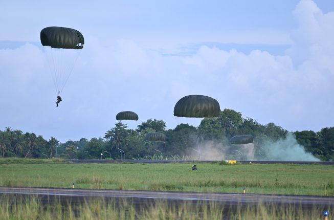 Indosiber.id – Makassar – Lanud Sultan Hasanuddin mendukung pelaksanaan latihan Terjun Penyegaran (Jungar) Prajurit Wing Komando II Pasukan Gerak Cepat (Kopasgat), dengan Droping Zone di Runway 13-31 Lanud Sultan Hasanuddin, Makassar, Kamis (23/1/2025).