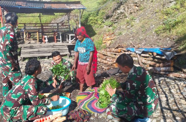 Indosiber.id – Puncak Jaya – Satgas Yonif 715/Motuliato Pos Merah Putih dalam membantu perekonomian masyarakat memborong hasil panen kebun masyarakat Distrik Mulia Kabupaten Puncak Jaya,Papua, Kamis (23/01/2025).