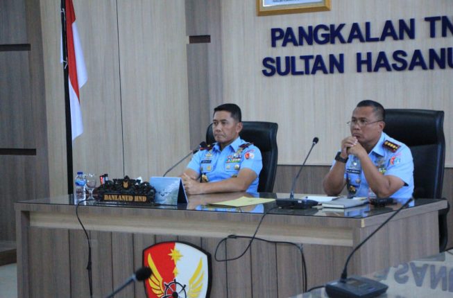 Indosiber.id – Makassar – Komandan Pangkalan Udara (Danlanud) Sultan Hasanuddin Marsma TNI Arifaini Nur Dwiyanto, M.Han., didampingi Komandan Wing Udara 5 Lanud Sultan Hasanuddin Kolonel Pnb Hilman L.P Ambarita, M.M.S., Komandan Skadron Udara 5 Letkol Pnb Devi Oktaviandra, M.Han., Komandan Skadron Udara 11 Letkol Pnb Andry Libarsyah Agung N., M.M.S. dan Komandan skadron Udara 33 Letkol Pnb A.Muh. Averroes A.M., M.Han., mengikuti Rapat Koordinasi (Rakor) Bidang Operasi TNI Angkatan Udara Tahun Anggaran 2025 secara daring melalui Video Conference (Vicon), bertempat di Ruang Rapat Markas Komando (Mako) Lanud Sultan Hasanuddin, Makassar, Rabu (19/2/2025).