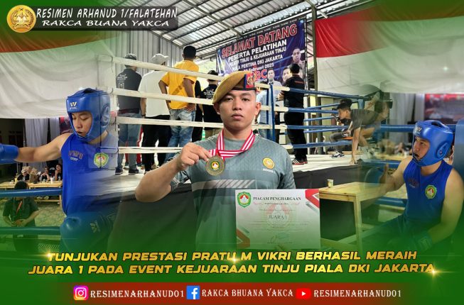 Indosiber.id – Jakarta- Prestasi membanggakan kembali ditorehkan oleh prajurit Resimen Arhanud 1/Falatehan.Pratu M Vikri suskes meraih juara 1 dalam kejuaraan tinju Piala DKI Jakarta (Sabtu,22/2/2025)